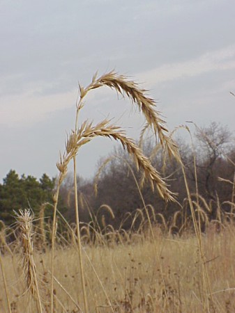 A dominent grass of the prairies, in open soils, ranging from coast to coast. Heights usually reach 2-4 feet but it can get as tall as 6 feet. It's indentifiable by it's nodding, flowering spikes with long curved awns. Cool season growth allows for spring and fall pasturing.