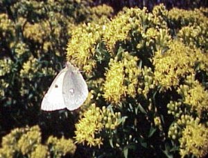 | Goldenrod, Stiff Solidago rigida A very showy goldenrod that is a Monarch favorite as well as many other species of butterflies. This plant is of single stalks, branched near the top to make clusters of flat topped flower heads. Easy to grow from seed, this plant has a very deep root system to survive in extreme drought conditons. This plant reaches a height of 1'-5' and grows well in dry to medium sandy soils in full sun. Companion plants can be Western Sunflower (Helianthus occidentalis), Yellow Coneflower (Ratibida pinnata), and Big Bluestem (Andropogon gerardi). |