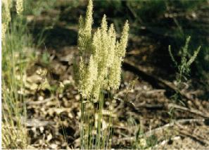 Porcupine GrassStipa spartea, also known as Needlegrass, this cool season bunch grass likes dry to mesic conditions. The stems can reach 2 to 4 feel tall in early summer. The seedheads are conspicuous because of their long twisted awns that are quite sharp, which can injure livestock as well as humans. |